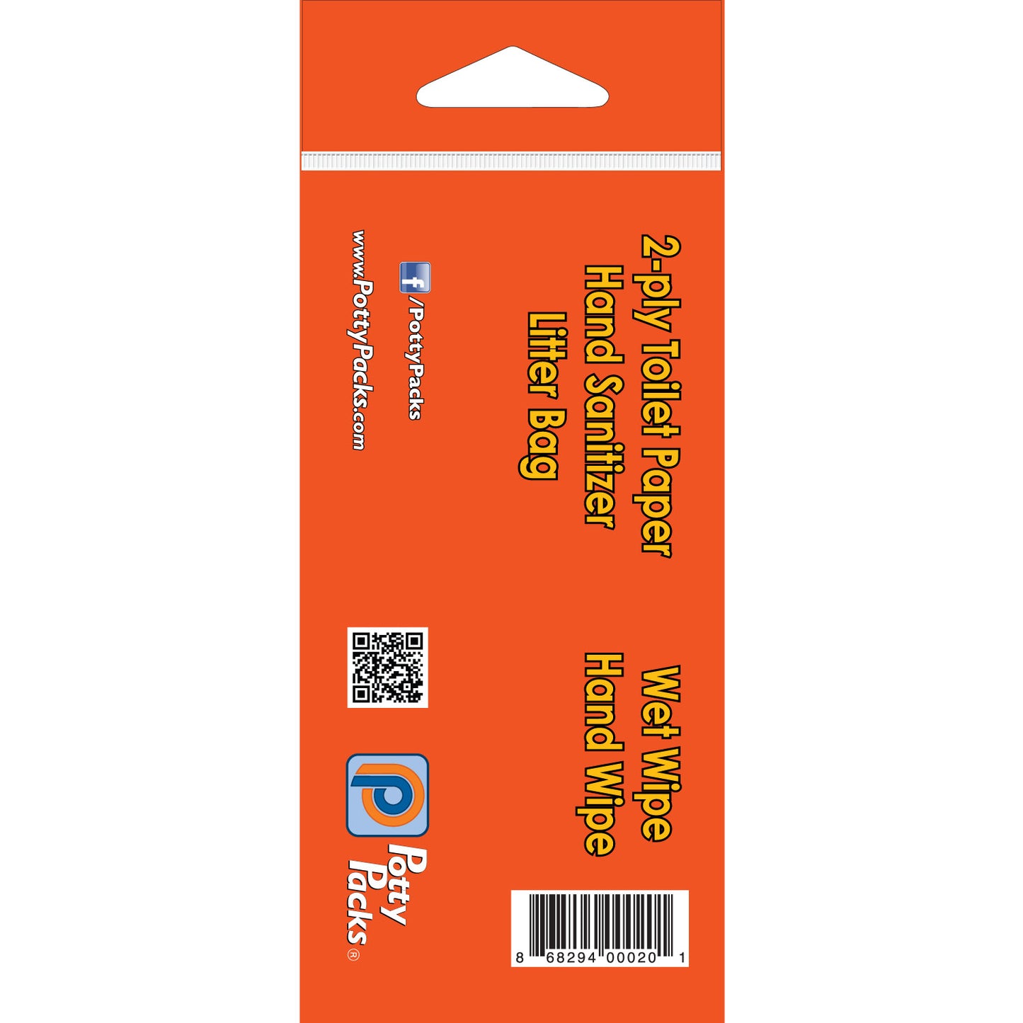 Included are 4 feet of two-ply toilet paper and wet wipes. The wet wipes are made with Vitamin E and Aloe Vera. Follow up by cleaning your hands with the sanitizer lotion and hand wipes. The disposal bag can be used to not to leave any trace behind.