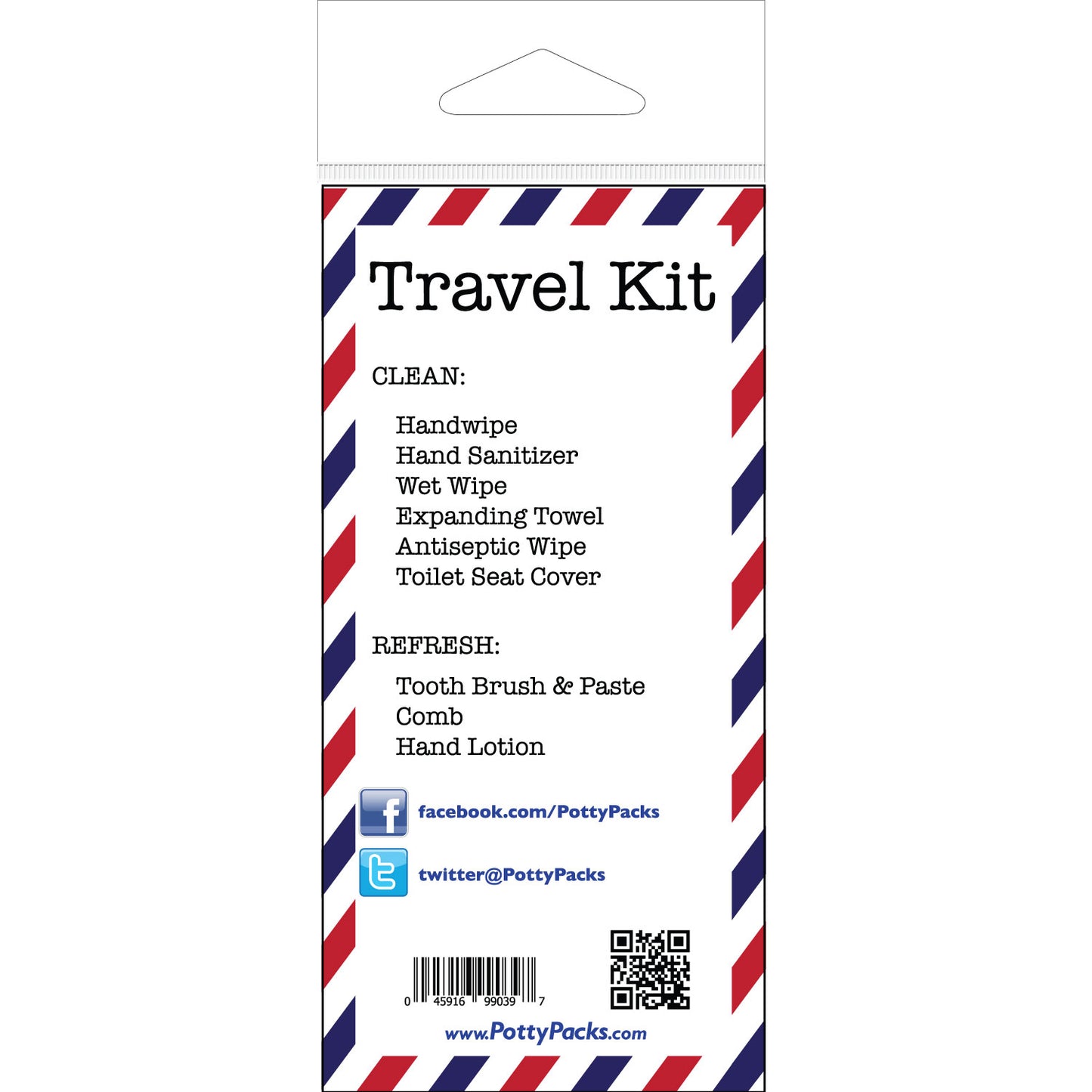 This travel kit gives you peace of mind. Freshen up with the toothbrush and paste, compressed washcloth, and wet wipe. Stay clean with the hand wipe and sanitize. Look fresh with the skin lotion and comb. Use the antiseptic wipe to sterilize your surroundings.